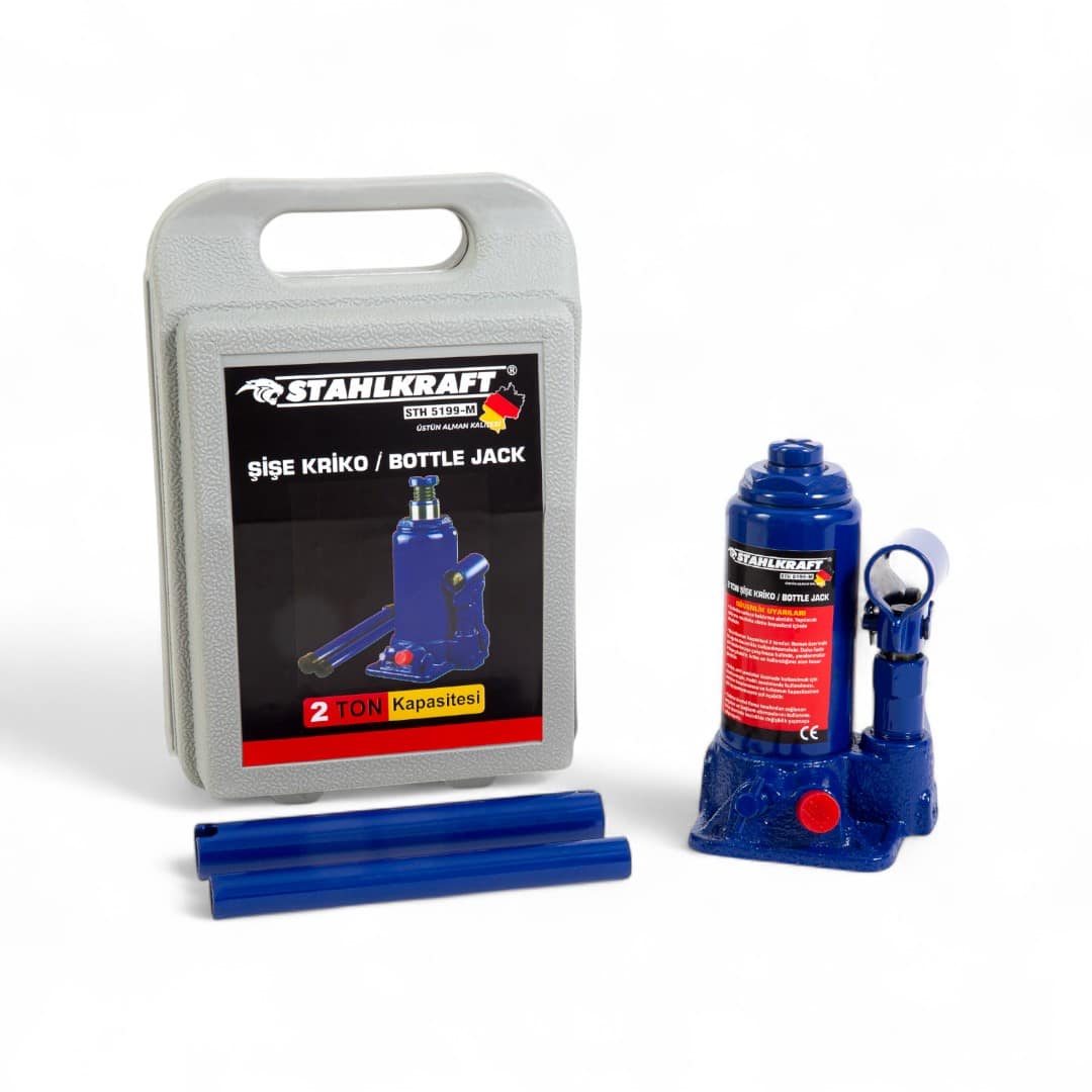 Kompakt tasarımı ve yüksek kaldırma kapasitesi ile STH 5199 Şişe Kriko, otomobil, kamyonet ve hafif ticari araçların bakım ve onarımında güvenilir bir yardımcınızdır. Dayanıklı çelik gövdesi ve güçlü hidrolik sistemi sayesinde ağır yükleri kolayca kaldırır. Taşınabilir yapısı, hem atölyelerde hem de yolda acil durumlarda pratik kullanım sağlar.